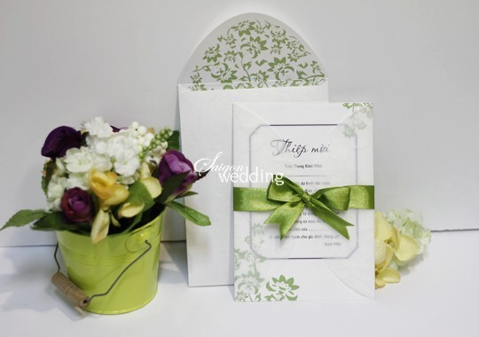 Trước khi xác định những vị khách cần mời bạn cần xác định tính chất tiệc cưới của mình: Ảnh: Mẫu thiệp của Saigon Wedding